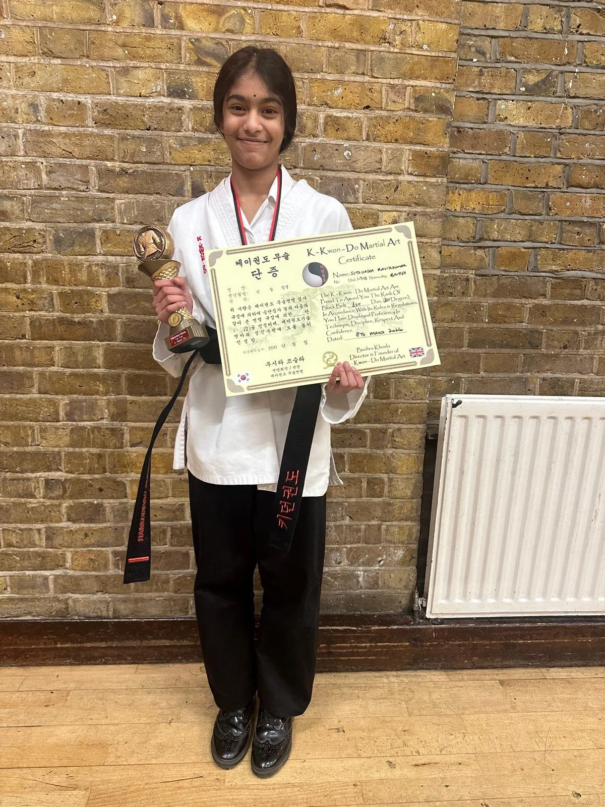 Congratulations Sithursha 12 Mar Written By Ms Khosla Congratulations Sithursha on achieving her 1st degree black belt View fullsize Ms Khosla https://www.kkwondo.org